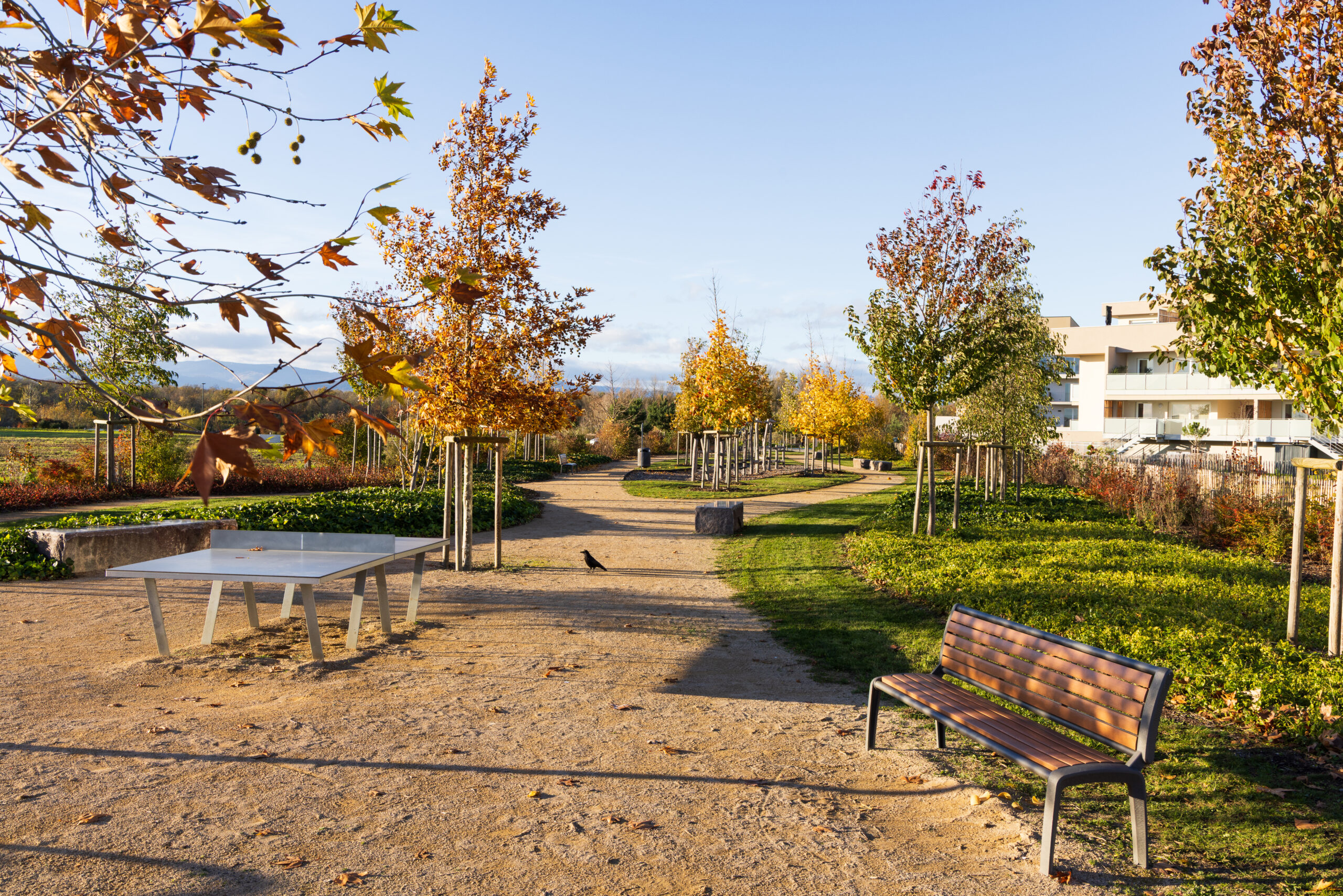 Un « axe vert » traverse ce nouveau quartier, permettant aux résidents de se promener et de se rendre au point d’eau des Oréades à pieds.